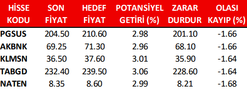 Günlük Pay (Hisse) Senedi Öneri Listesi