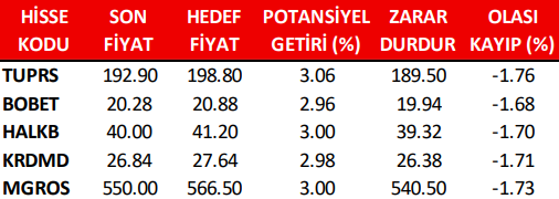 Günlük Pay (Hisse) Senedi Öneri Listesi
