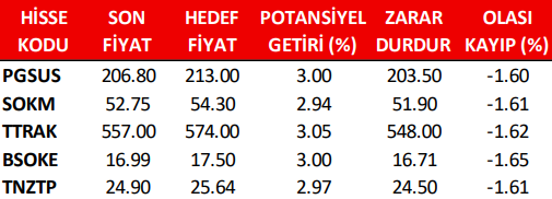 Günlük Pay (Hisse) Senedi Öneri Listesi