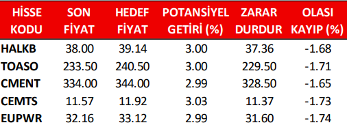 Günlük Pay (Hisse) Senedi Öneri Listesi