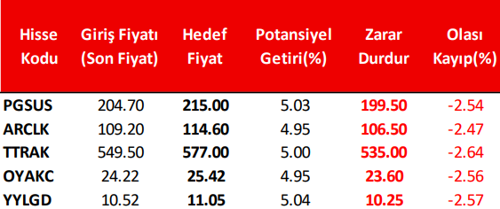 *Haftalık Model Portföyümüz teknik analize göre hazırlanmış olup; temel veriler dikkate alınmamıştır.