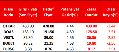 *Haftalık Model Portföyümüz teknik analize göre hazırlanmış olup; temel veriler dikkate alınmamıştır.