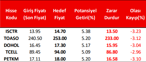 *Haftalık Model Portföyümüz teknik analize göre hazırlanmış olup; temel veriler dikkate alınmamıştır.