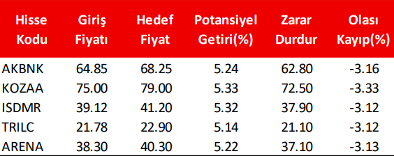 *Haftalık Model Portföyümüz teknik analize göre hazırlanmış olup; temel veriler dikkate alınmamıştır.