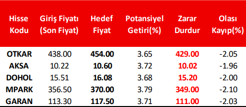 *Haftalık Model Portföyümüz teknik analize göre hazırlanmış olup; temel veriler dikkate alınmamıştır.