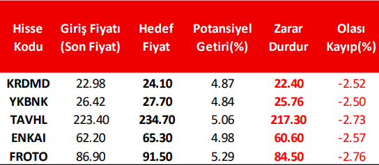 *Haftalık Model Portföyümüz teknik analize göre hazırlanmış olup; temel veriler dikkate alınmamıştır.