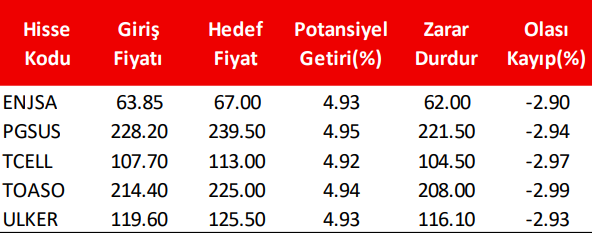 *Haftalık Model Portföyümüz teknik analize göre hazırlanmış olup; temel veriler dikkate alınmamıştır.