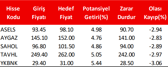 *Haftalık Model Portföyümüz teknik analize göre hazırlanmış olup; temel veriler dikkate alınmamıştır.