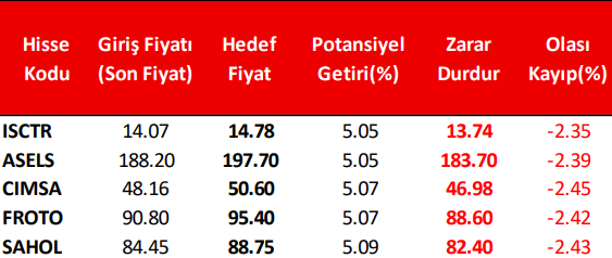 *Haftalık Model Portföyümüz teknik analize göre hazırlanmış olup; temel veriler dikkate alınmamıştır.
