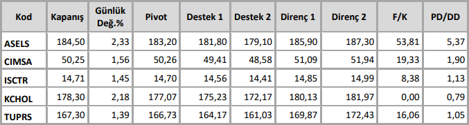 BIST 100 endeksi son bir aylık işlemlerde yükselen trendin devam etmesi ve 5, 22, 50 ve 200 günlük AO’ların üstünde hareket etmesiyle birlikte pozitif seyir görünümünü koruyor. Dün 10640-10744 bandında hareket eden endekste 10600 seviyesi korunduğu sürece pozitif seyir 10783’e kadar devam edebilir. Bu seviyenin üstünde kalıcılık sağlanması halinde 11000 sonraki hedef direnç olabilir. Olası geri çekilmelerde 5 günlük AO’ya yakın 10600 seviyesinin altında kapanışlar yapılmaması endeksin pozitif görünümünü koruması açısından kritik öneme sahip. Bu seviyenin aşağı yönlü geçildiği senaryoda 10500-10440 bölgesine geri çekilme söz konusu olabilir. Bu bölgede kalıcılık sağlanamadığı durumda 50 günlük AO’sının bulunduğu 10200-10000 bölgesine doğru geri çekilme yaşanabilir. Genel görüşümüz endeksin 10600 üzerinde güç kazandığı sürece 11000 seviyesine doğru hareketlenme olabileceği yönündedir. Orta vadeli görünümde, MACD göstergesinde zayıflama gözlenmesi olumsuz olarak yorumlanabilir. Endeks dolar bazında 200 günlük AO’sı 2,56 cent üzerinde yükseliş trendini dünkü işlemlerde 2,65 cente kadar yükseltti. Dolar bazında 2,60 ilk destek olmak üzere 2,56 cent üzerinde kalındığı sürece 2,70-2,75 cent bölgesinin hedefte olduğunu düşünmekteyiz.