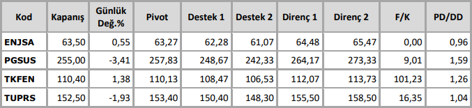 BİST100 endeksi dünkü işlemlerde 9990-10306 bandında hareket ettikten sonra günü %1,02 oranında değer kaybederek 10121 puandan tamamladı. İşlem hacmi 124 milyar TL olarak gerçekleşti. Endekse en çok katkıyı ASELS, PASEU, SAHOL sağlarken, BIMAS, THYAO, AKBNK baskılayan tarafta yer aldı. Günlük bazda sınai endeksi %0,93, bankacılık endeksi %2,56 değer kaybetti. Bankacılık endeksi son iki işlem gününde satış baskısının etkisinde bulunuyor. Son iki haftalık işlemlerde 15500 yakınlarında destek bulan XBANK’ta, kısa vadeli yönün yukarı dönmesi için ilk olarak 5 günlük AO’sı 15856 puanın geçilmesi gerekiyor. Bu seviye üzerinde yeniden 16200-16500 dirençleri hedefe girebilir. 15500 kırılması halinde ise 15320 (22 günlük AO) ve 15000 destekleri takip edilebilir. Geçtiğimiz hafta etkili olan yükselişin etkisi ile 50 günlük AO 14190 puan ile 200 günlük AO’sı 13776 puan üzerine yükselerek orta vadeli yönde pozitif görüntüye işaret etti.