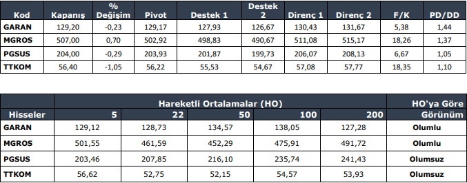 RSI göstergesi hafta kapanışında 45 puandan 42 puana gerileyerek, aşırı satım bölgelerinden momentumun zayıf eğilimde olduğuna işaret etmektedir. Geçen hafta 10800 ve 10600 seviyeleri altında hareket edilmesi ile orta vadeli gösterge olan MACD tarafında da satım konumuna geçildi. Bu çerçevede endekste yönün yukarı dönmesi için 10550-10600 direnç bölgesinin ve ardından da 10800 ve 11000 dirençlerinin geçilmesi gerekiyor. Hafta genelinde 10440, 10330 (50 haftalık ağırlıklı ortalama) ve 10000 önemli destekler konumundadır.