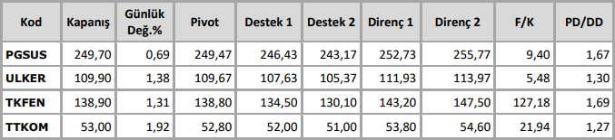BİST100 endeksi dünkü işlemlerde 9268- 9477 bandında hareket ederek günü %0,05 değer kazancıyla 9321,64 puandan tamamladı. İşlem hacmi 108,2 milyar TL olarak gerçekleşti. Sınai endeksi günü %0,03, bankacılık endeksi %1,16 değer kazancıyla tamamladı. Endekse puan bazlı en çok katkıyı YKBNK, KCHOL, TOASO sağlarken THYAO, ASELS, CCOLA endeksi baskılayan tarafta yer aldı. Kısa vadeli yönün 11725 altında negatif seyrettiği bankacılık endeksinde, 11500-12000 bandındaki yaklaşık son üç haftalık sıkışık seyir devam etmektedir. Kısa vadeli yükselen hareketin başlaması için 12000 ve üzerinde tutunmalar önem arz etmekte. Bu bölge üzerinde ise 22 günlük AO’nın bulunduğu 12150 hedefe girebilir. Olası geri çekilmelerde ise 11300-11150 bölgesi izlenecek olup aşağı yönde geçilmesi halinde satışların hız kazanması beklenebilir. Yılın en düşük seviyesi olarak takip edilen 11375’in geçilmesi halinde XBANK’ta yeni dip arayışı izlenebilir.