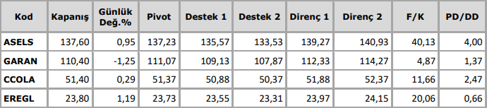 Asya borsaları bu sabah Hang Seng hariç alıcılı yönde bulunuyor. ABD’de vadeli piyasalar bu sabah yatay negatif yönde seyretmekte. Bugün küresel piyasalarda ABD’de Fed’in toplantı tutanakları, Almanya’da işsizlik oranı, yurt içinde ise ekonomik güven endeksi takip edilecek. BİST 100 endeksinde güne tepki alımları ile başlanmasını beklemekteyiz. Endekste kısa vadeli yönün yukarı dönmesi için ilk etapta 9350-9400 bölgesinin geçilmesi gerekiyor. Bu seviye üzerinde ise 9500 direnci ve 200 günlük AO’sı 9650 sonraki önemli direnç noktasını oluşturmaktadır. Olası satıcılı seyrin devamında ise 9050 tepki alımlarının güçlendiği destek olabilir.