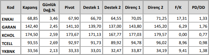 BİST100 endeksi dünkü işlemlerde 10481-10648 bandında hareket ettikten sonra günü 10618 puandan tamamladı. Dünkü işlemlerde işlem hacmi 113 milyar TL olarak gerçekleşti. Endekse en çok katkıyı TCELL, FROTO, DSTKF sağlarken, PGSUS, ALTNY, CANTE baskılayan tarafta yer aldı. Sınai endeksi %1.26, bankacılık endeksi %1,31 değer kazandı. XBANK’ta son beş haftalık işlemlerde 16625 puanın geçilememesi ile başlayan kısa vadeli düzeltme hareketi bu hafta 15700 yakınlarında destek buldu. 5 ve 22 günlük AO’ların 15900 yakınlarında kesişmesi ve günün 16000 puan üzerinde kapatılması kısa vadeli yön açısından olumlu. XBANK’ta 16000 puan üzerinde alımların güçlenmesi ve bu seviyenin desteğe dönüşmesi halinde 16392-16500 ilk direnç bölgesi olarak takip edilebilir. Bu seviye üstünde kalıcılık sağlanması durumunda ilk direnç noktası olarak 16750 seviyesi takip edilebilir. Kısa vadede 16000 seviyesinin üstünde kalıcılık sağlanamadığı halde negatif görünüm güçlenebilir. Geri çekilmelerde ilk destek olarak 15700-15500 seviyesi takip edilebilir. Bu seviyenin aşağı yönlü kırılması durumunda 50 günlük AO olan 15025 seviyesi gündeme gelebilir.