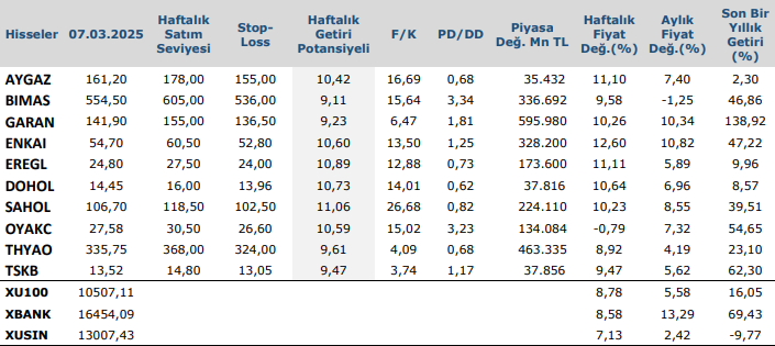 Anadolu Yatırım Haftalık Hisse Önerileri – (10-14 Mart 2025)
