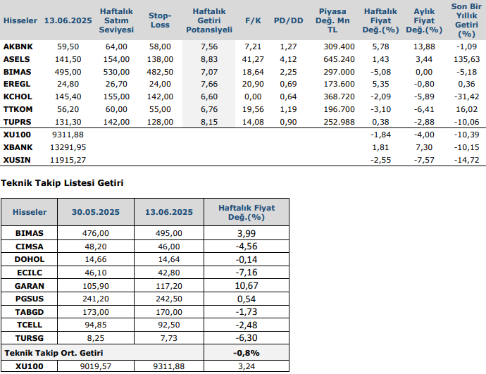 Geçtiğimiz hafta baskılanan dolar endeksi (DXY) haftayı 98,18 seviyesinde %1,01 değer kaybı ile tamamladı. ABD 10 yıllık tahvil getirileri haftayı %4,41 seviyesinde tamamladı. Geçtiğimiz hafta ABD borsaları satıcılı seyretti. Haftalık bazda S&P 500 %0,39, Nasdaq %0,63, Dow Jones Industrial %1,32 değer kaybetti. Ons altın jeopolitik risklerin artması ile geçtiğimiz haftayı %3,44 değer kazancıyla 3433 dolardan tamamladı. Brent petrol de haftayı %11,06 değer kazancıyla 73,68 dolardan tamamladı.
