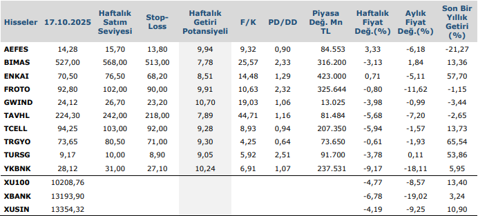 Anadolu Yatırım Haftalık Hisse Önerileri – (20-24 Ekim 2025)