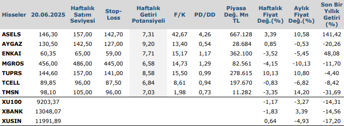 Anadolu Yatırım Haftalık Hisse Önerileri – (23-27 Haziran 2025)