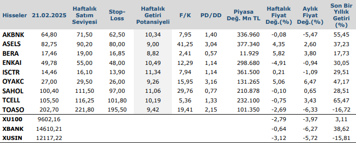 Bu hafta küresel piyasalarda ABD’de GSYH ve çekirdek PCE, Euro Bölgesi’nde TÜFE, Almanya’da TÜFE ve GSYH, Japonya’da Tokyo TÜFE, yurt içinde GSYH takip edilecek. ABD’de bu hafta “Muhteşem Yedili” hisselerinden NVIDIA’nın 2024 bilançosunu açıklaması bekleniyor. Yurt içinde ise bu hafta ASELS, BIGCH, BRISA, DOAS, ENJSA, GWIND, SISE, TCELL ve THYAO’nun 4Ç24 finansal sonuçları takip edilecek.