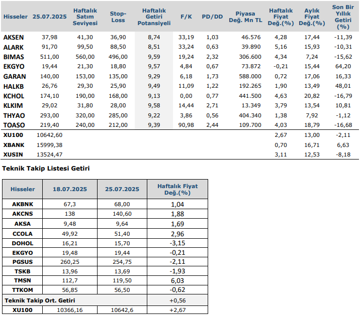 Anadolu Yatırım Haftalık Hisse Önerileri – (28 Temmuz – 1 Ağustos 2025)