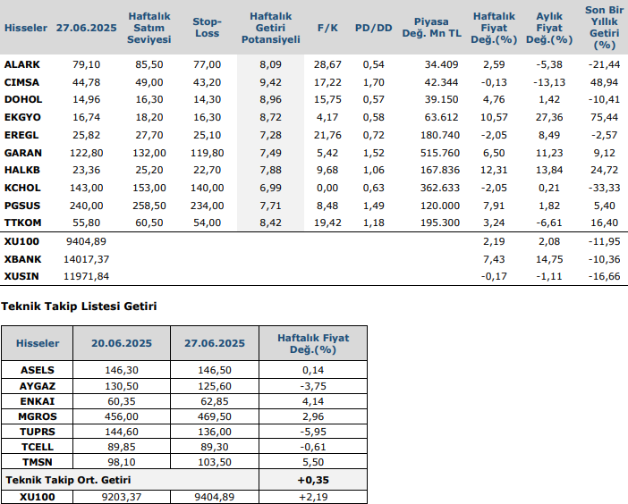 Geçtiğimiz hafta baskılanan dolar endeksi (DXY) haftayı 97,40 seviyesinde %1,32 değer kaybı ile tamamladı. ABD 10 yıllık tahvil getirileri haftayı %4,28 seviyesinde tamamladı. Geçtiğimiz hafta ABD borsaları pozitif seyretti. Haftalık bazda S&P 500 %3,50, Nasdaq %4,20, Dow Jones Industrial %3,82 değer kazandı. Ons altın geçtiğimiz haftayı %3,28 değer kaybıyla 3274 dolardan tamamladı. Brent petrol de haftayı %12,62 değer kaybıyla 66,33 dolardan tamamladı.