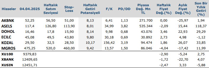 Anadolu Yatırım Haftalık Hisse Önerileri – (7-11 Nisan 2025)