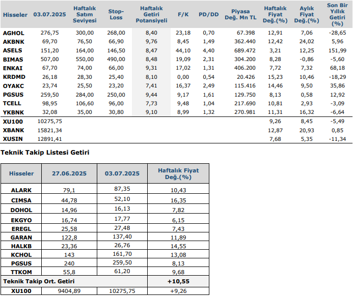 Bu hafta ABD’de piyasaların yeniden yoğun bir gündeme çevrildi. Öncelikle, Trump yönetiminin “Liberation Day” tarifelerine tanıdığı 90 günlük müzakere süresinin 9 Temmuz’da sona ermesi beklenirken, bu sürenin 1 Ağustos’a ertelendiği açıklandı. İngiltere ve Vietnam gibi bazı ülkelerle anlaşmalar sağlanmış olsa da, Kanada ile görüşmeler sona erdirildi ve diğer birçok ülkeyle müzakereler hâlâ belirsizliğini koruyor. Tarife görüşmelerinin akıbeti, özellikle küresel tedarik zincirlerine hassasiyet gösteren sektörler için büyük önem taşıyor. Çarşamba günü açıklanacak olan Fed’in Haziran ayı toplantı tutanakları da yatırımcıların yakından takip edeceği bir diğer önemli başlık. Tarım dışı istihdam verisinin ardından faiz indirimi ihtimallerinin zayıfladığı ortamda, tutanaklar Fed yetkililerinin gelecek adımları nasıl değerlendirdiğine dair kritik ipuçları sunabilir. Ayrıca bu hafta açıklanacak haftalık işsizlik başvuruları istihdam piyasasına dair güncel bir tablo çizecek. Öte yandan, ABD Başkanı Trump’ın geçtiğimiz hafta onayladığı büyük vergi ve harcama paketi, ekonomik aktiviteyi canlandırma potansiyeline sahip olması nedeniyle borsa için pozitif bir unsur olarak öne çıkıyor. Artan kamu harcamalarının, özellikle savunma ve altyapı sektörlerinde büyümeyi desteklemesi bekleniyor. Aynı zamanda bu hafta açıklanacak olan Delta Air Lines, Conagra Brands ve Levi Strauss gibi büyük şirketlerin bilançoları da hisse bazlı hareketliliği etkileyebilir.