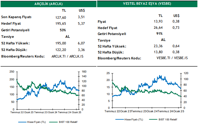 Ocak ayına ilişkin datayı sektör hisseleri ARCLK, VESBE, VESTL açısından NEGATİF olarak değerlendiriyoruz.