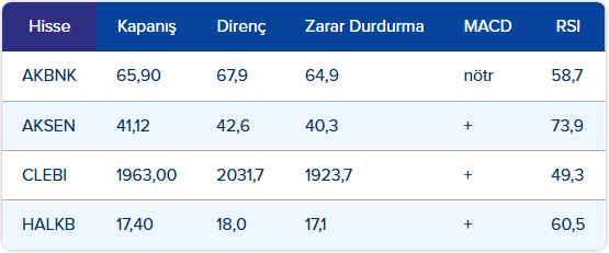 • Teknik görünüme baktığımızda, geri çekilmelerde 9.960 – 9.930 – 9.900 puan seviyelerini takip edeceğiz. Yukarı hareketlerde ise sırasıyla 10.025 – 10.055 – 10.115 direnç seviyeleri olarak izlenebilir.