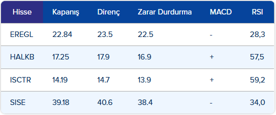 • Teknik görünüme baktığımızda gün içi geri çekilmelerde 9.705 – 9.660 – 9.620 puan seviyelerini takip edeceğiz. Yukarı hareketlerde ise sırasıyla 9.800 – 9.865 – 9.890 direnç seviyeleri olarak izlenebilir.