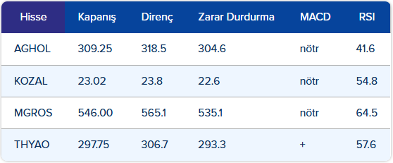 • Teknik görünüme baktığımızda gün içi geri çekilmelerde 9.825 – 9.790 – 9.735 puan seviyelerini takip edeceğiz. Yukarı hareketlerde ise sırasıyla 9.905 – 9.925 – 9.965 direnç seviyeleri olarak izlenebilir.
