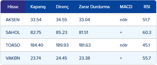 • Endekste gün içi geri çekilmelerde 9.308 – 9.207 – 9.065 puan seviyelerini takip edeceğiz. Yukarı hareketlerde ise sırasıyla 9.395 – 9.480 – 9.515 direnç seviyeleri olarak izlenebilir.