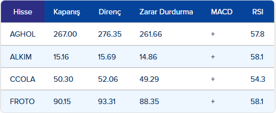 • Endeksi teknik açıdan değerlendirdiğimizde, teknik göstergelerin kısa vadede aşırı alım bölgesine yaklaşmakta olduğu görülmekte. RSI göstergesi 67 seviyesinin üzerinde. Geçmiş dönemde (özellikle 10.000 puan üzerindeki son iki tepede) RSI’nın 73 ve 76 seviyelerinden dönüş yaptığı görülmüştü. Ayrıca, geçtiğimiz Ağustos-Mart dönemindeki yatay bantta 10.160 – 10.275 puan aralığı, üst bandın tepe bölgesi olarak öne çıkmıştı. Bu nedenle, bu seviyeler hâlâ önemli direnç alanları olma potansiyelini koruyor.