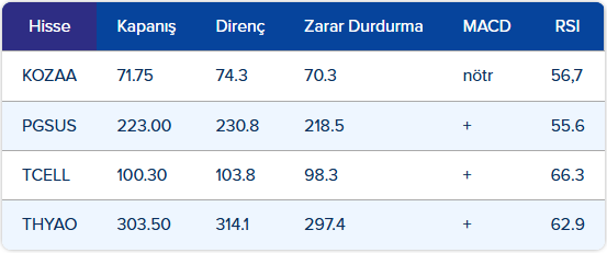 • Teknik görünüme baktığımızda gün içi geri çekilmelerde 9.925 – 9.880 – 9.865 puan seviyelerini takip edeceğiz. Yukarı hareketlerde ise sırasıyla 10.015 -10.065 – 10.115 direnç seviyeleri olarak izlenebilir.