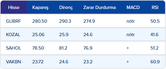 • Endekste gün içi geri çekilmelerde 9.500 – 9.460 – 9.420 puan seviyelerini takip edeceğiz. Yukarı hareketlerde ise sırasıyla 9.550 – 9.600 – 9.675 direnç seviyeleri olarak izlenebilir.
