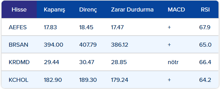 • Endekste gün içi geri çekilmelerde 11.090 – 10.995 – 10.960 puan seviyelerini takip edeceğiz. Yukarı hareketlerde ise sırasıyla 11.250 – 11.295 – 11.400 direnç seviyeleri olarak izlenebilir.