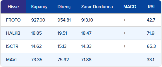 • Teknik görünüme baktığımızda gün içi geri çekilmelerde 9.960 – 9.925 – 9.865 puan seviyelerini takip edeceğiz. Yukarı hareketlerde ise sırasıyla 10.050 – 10.075 – 10.115 direnç seviyeleri olarak izlenebilir.