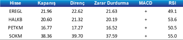 • Endekste 22 ve 250 günlük hareketli ortalamaların kesiştiği 9.505 – 9.520 aralığı, teknik açıdan kritik bir eşik haline gelmiş durumda. Bu bölgenin aşılması halinde, yukarı yönlü hareketin 9.800 puan seviyesine doğru devam etmesi beklenebilir.