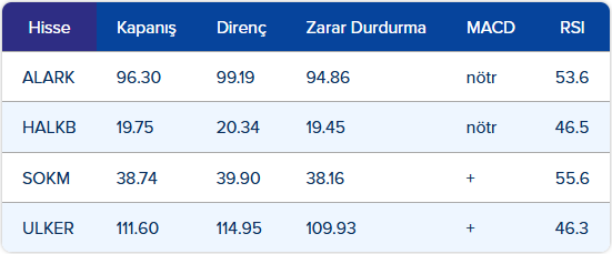 • Endekste gün içi geri çekilmelerde 9.250 – 9.050 – 9.000 puan seviyelerini takip edeceğiz. Yukarı hareketlerde ise sırasıyla 9.375 – 9.485 – 9.500 direnç seviyeleri olarak izlenebilir.