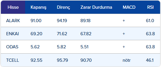• Bugüne başlarken 10.528 seviyesinde bulunan 8 günlük EMA’yı önemle takip edeceğiz. Bu seviyenin kırılması halinde satış baskısının artması beklenebilir. Formasyondan uzaklaşmak için endeksin güne 10.575 puan üzerinde başlaması ve kapanışı 10.610 üzerinde yapması gerektiğini düşünmekteyiz. Bu gerçekleşmediği takdirde, düzeltme hareketi ilk etapta 10.440; sonrasında ise 10.375 destek seviyelerine yönlenebilir. Ortalama ve Fibonacci ana destek bölgesi olarak ise 10.250 – 10.275 puan aralığı takibimizde olacaktır.