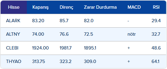 • Teknik görünüme baktığımızda gün içi geri çekilmelerde 9.740 – 9.660 – 9.580 puan seviyelerini takip edeceğiz. Yukarı hareketlerde ise sırasıyla 9.810 – 9.866 – 9.960 direnç seviyeleri olarak izlenebilir.