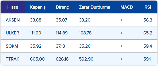 • Endekste gün içi geri çekilmelerde 10.000 – 9.880 – 9.800 puan seviyelerini takip edeceğiz. Yukarı hareketlerde ise sırasıyla 10.300 – 10.380 – 10.460 direnç seviyeleri olarak izlenebilir.