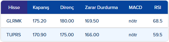 • Endeksi teknik açıdan değerlendirdiğimizde, dünkü satışların 50 günlük EMA (10.680) seviyesinden karşılandığını ve endeksin bu seviyenin üzerinde kapanış yaptığını takip ettik. Teknik görünüm açısından bu seviye geri çekilmelerde kritik bir destek bölgesi olarak izlenebilir. Ancak, bu seviyenin hacim destekli aşağı yönlü kırılması halinde 10.470 – 10.380 bölgesine doğru geri çekilme görülebilir.