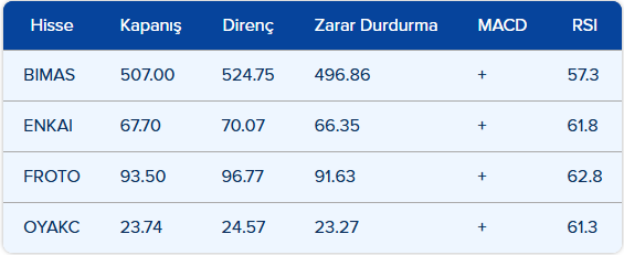 • Teknik açıdan, endeksin 10.300 seviyesinin üzerinde kalmakta zorlandığı ancak geri çekilmelerin de sınırlı kaldığı bir fiyatlama davranışı dikkat çekiyor. Kısa ve orta vadede yukarı yönlü hareketlerin devam edebilmesi için 10.300 direnç bölgesinin aşılması gerektiğini düşünüyoruz. Bu seviyenin geçilmesi durumunda alımların artabileceğini ve 10.380 – 10.460 direnç bölgesinin hedeflenebileceğini öngörüyoruz. Geri çekilmelerde ise kısa vadeli yön açısından takip ettiğimiz 5 günlük üssel hareketli ortalama seviyesi olan 10.090 puanı yakından izlenebilir.