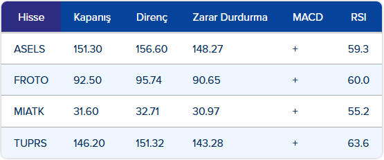 • Dün geri çekilmede, 5 günlük üssel hareketli ortalama 10.095 seviyesinde destek görevi gördü ve bu konumunu koruyor. Olası daha derin geri çekilmelerde, 8 günlük EMA takip edilecek alt sınır olarak takip edilebilir. Bugün itibarıyla bu ortalama 9.980 puan seviyelerinde bulunuyor. Teknik açıdan yukarı yönlü hareketlerde ana direnç olarak 9.300 bölgesini önemsemekteyiz. Bu seviyenin üzerinde kalıcı olunması durumunda kısa-orta vadede yukarı yönlü hareketlerin görülebileceğini tahmin etmekteyiz.