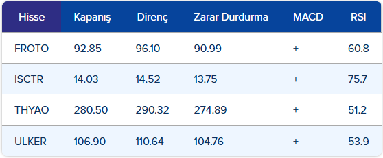 • Teknik açıdan kısa vadeli yön için takip ettiğimiz 8 günlük üssel hareketli ortalama, 9.982 seviyesinde bulunuyor. Bu seviye, geri çekilmelerde önemli bir destek noktası olarak izlenebilir. Teknik olarak bu seviyenin aşağı yönlü kırılması durumunda, 9.865 – 9.780 aralığına doğru bir geri çekilme görülebilir. Yukarı yönlü tepkilerde ise 10.050 seviyesi ilk önemli direnç olarak öne çıkmaktadır. Bu seviyenin aşılması halinde, 10.125 ve 10.225 seviyeleri bir sonraki teknik direnç bölgelerini takip etmekteyiz.