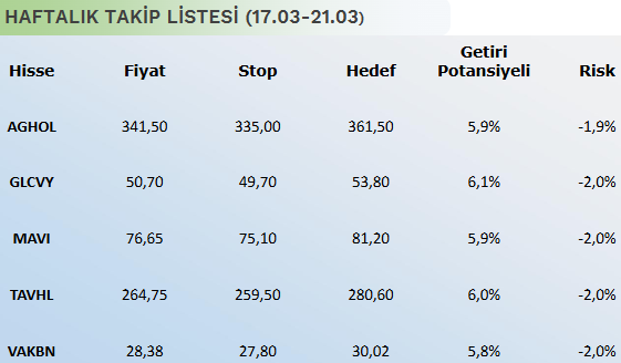 BIST100 endeksi geçtiğimiz haftayı 3,17% yükselişle 10840 puandan tamamladı. XUSIN %4,91 yükselişle bu hafta da endekse öncülük ederken, XBANK endeksi %2,28 yükselişle endeksin gerisinde kaldı. Geçtiğimiz hafta açıklanan verilerde mart ayının ilk haftasında yabancıların 217mn $ net hisse alışı yaptığı görüldü. Yeni haftada yurt içinde gündem, içerideki siyasi haber akışları ve 20-21 Mart’taki CB Erdoğan’ın da katılacağı AB Liderler Zirvesi olacak.