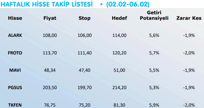 BIST100 endeksi geçtiğimiz haftayı %6,51 yükselişle 13838 puandan tamamlarken tarihi rekor kırmaya devam etti. Endeksin ocak ayı getirisi ise %22,9 oldu. Perşembe günü endekste 302 milyar TL ile işlem hacmi rekoru da kırıldı. BANK %10,5 XHOLD %9,4 yükselişle harekete öncülük ederken, XULAS haftayı yatay kapattı. Yeni haftada ana gündem salı günü açıklanacak ocak ayı TÜFE rakamları ve özel bankaların 4Ç25 finansal sonuçları olacak. İTO TUFE sonuçları görece olumlu açıklanırken, TÜİK’in yeni ağırlıklarla açıklayacağı rakamlarda aşağı ve yukarı yönlü sapmalar volatiliteyi artırabilir.