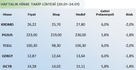 Colendi Menkul Haftalık Hisse Önerileri – (20-24 Ocak 2025)